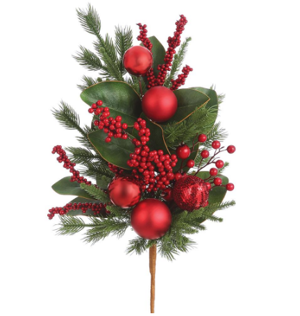 (00304) XDS330-RE/GR, EA, ORNAMENT BALL BERRY PINE SPRAY GREEN/RED 26"
