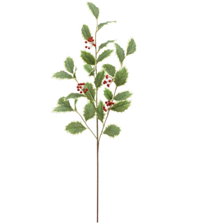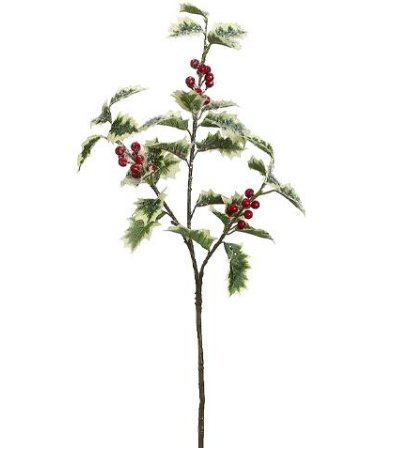 Iced Holly Spray W/Berry Variegated Ice 28"