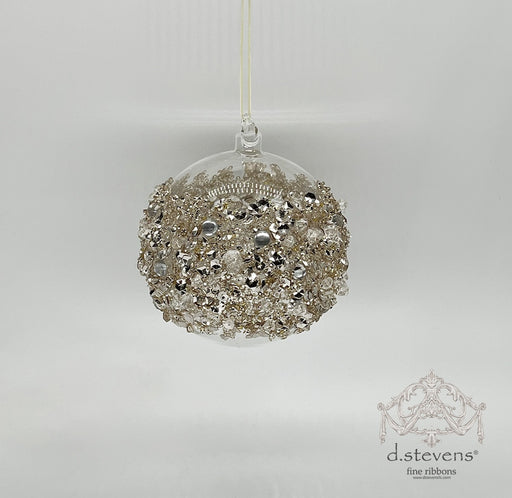 Glass Gold Bead Encrusted Orb, 120mm Clear