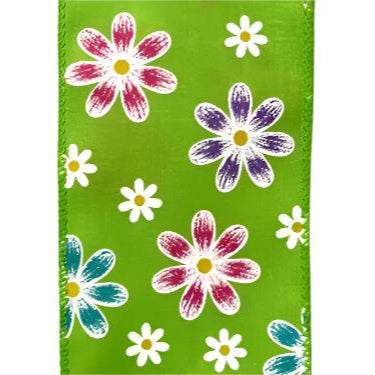 (28170) 841-40-008, 2.5" x 50YD, SPRING DAISIES 2.5"X50Y LIME