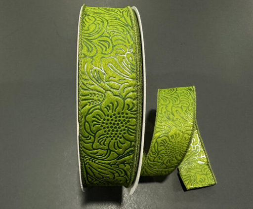 Flower Embossed Breeze #9 - 1.5" x 50yd - Moss