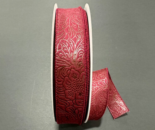Flower Embossed Breeze #9 - 1.5" x 50yd - Burgundy