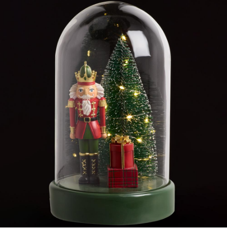 B/O Nutcracker In Glass Dome With Light 11" Red Green