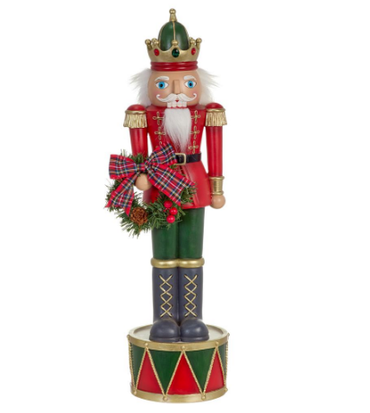 (00409) XSH030-RE/GR, EA, NUTCRACKER W/ PINE WREATH 23.5"