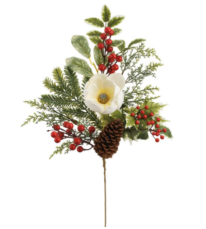 Magnolia/Berry/Holly Pine Spray White/Red 26"