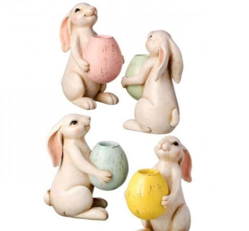 (31434), MT24934, EA, RESIN EASTER BUNNY EGG TAPER HOLDER 5.5" 4 ASST