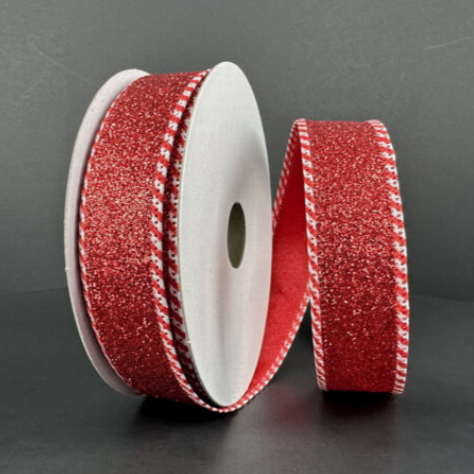 Satin Glitter Candy Cane - 1.5" x 50yd - Red/White