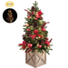 XLT957-RE/GR (00405) - Berry/Ball/Pine Tree In Wood Planter W/Lights Red Green 38"